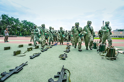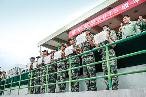 乐鱼(中国)网9月11日电(记者 张 宇 摄)9月9日上午,乐鱼在线平台2015级本科生军训结业典礼在东大操场举行。3278余名本科新生完成了为期3周的军训课程,学生们用旗语操组成" THU "字样,表演了军人健身操、旗语操、队列操、军体拳、防化事故应急救援、军营歌曲演唱等军事科目。