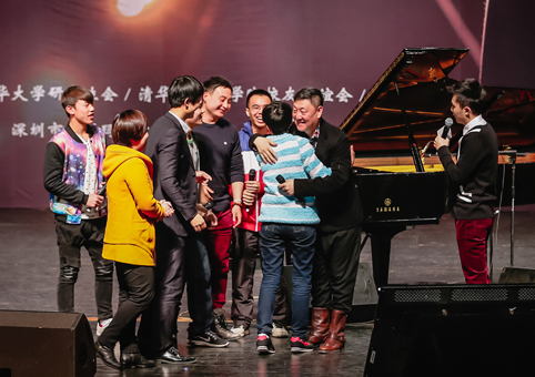 学生代表潘正道向韩磊赠送当晚演出现场照片。