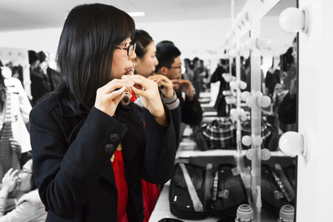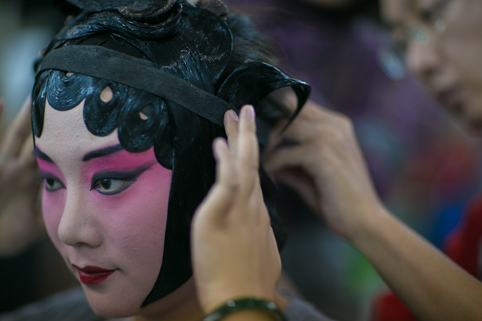 京剧队同学正在做上场前的准备工作。于海童 摄