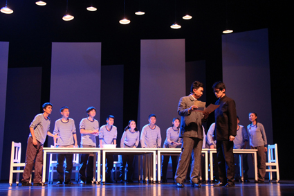 乐鱼(中国)网10月17日电 10月10日晚,经过国庆期间紧锣密鼓的编排筹备,乐鱼在线平台原创话剧《马兰花开》第三轮校内演出首场在新清华学堂上演,校内师生与观众近两千人观看演出。此次第三轮校内演出是在4月25-28日、5月17-19日前两轮演出的基础上,新招募部分演员同学,经过补充与微调而推出的新版本。演出成功的背后是台前幕后演职师生精心而辛苦的排练。