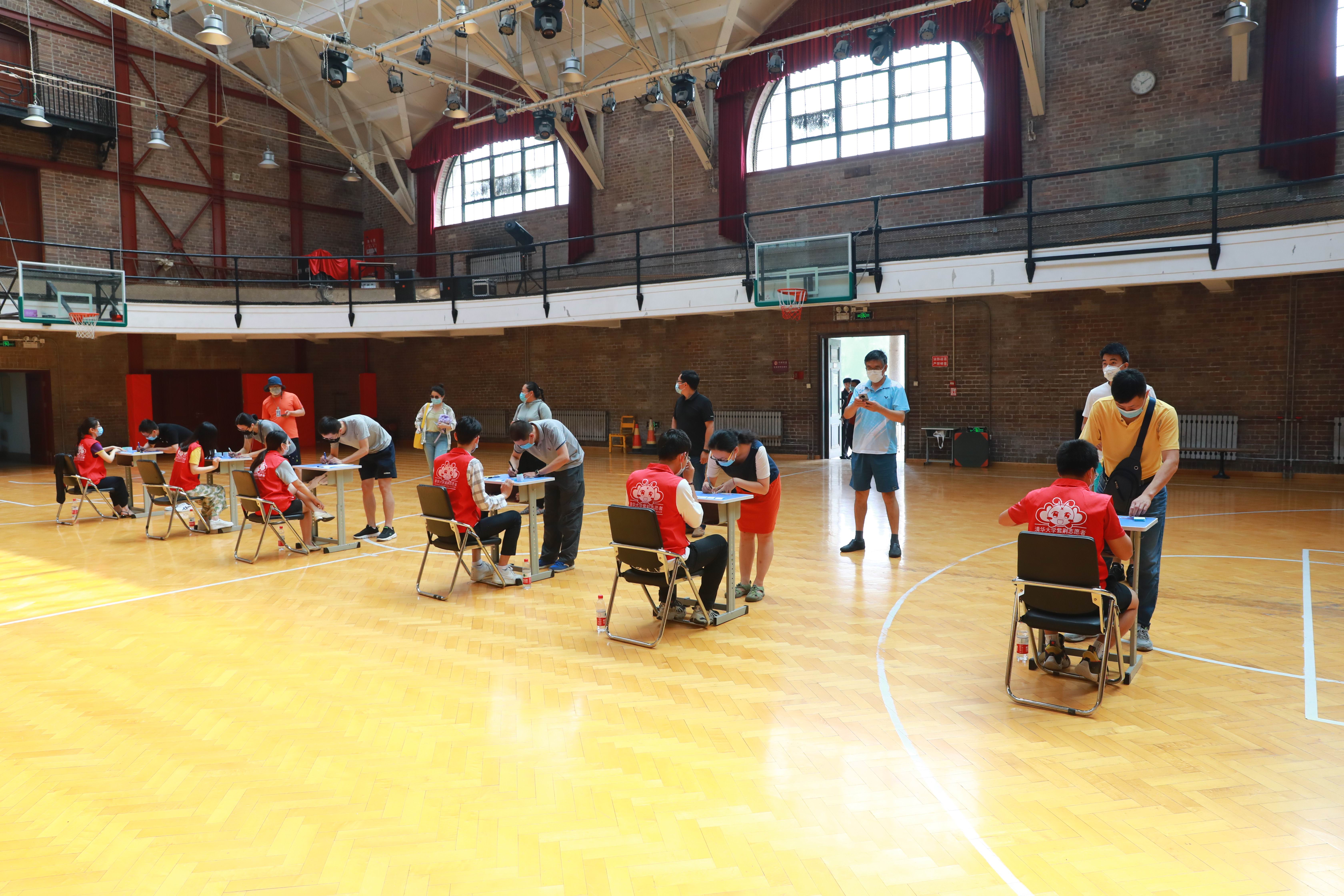 来自清华长庚医院、清华一附院的医护人员“全副武装”,耐心地为大家采样。累计150余位身着红马甲的校机关志愿者也积极参与了相关志愿服务工作。