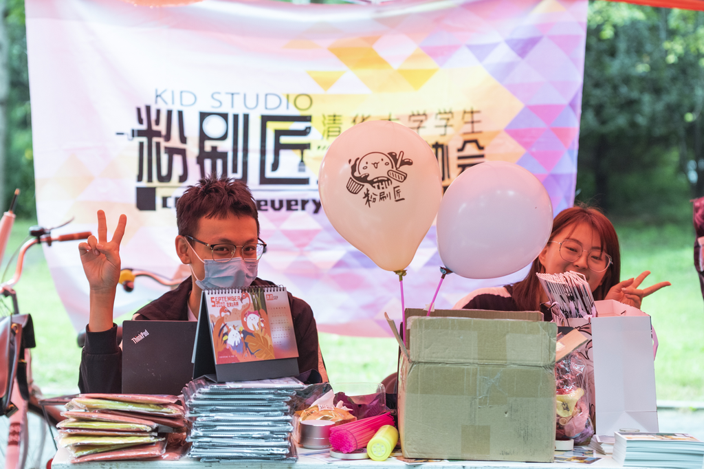 学生粉刷匠工作室协会的社团骨干在招新现场