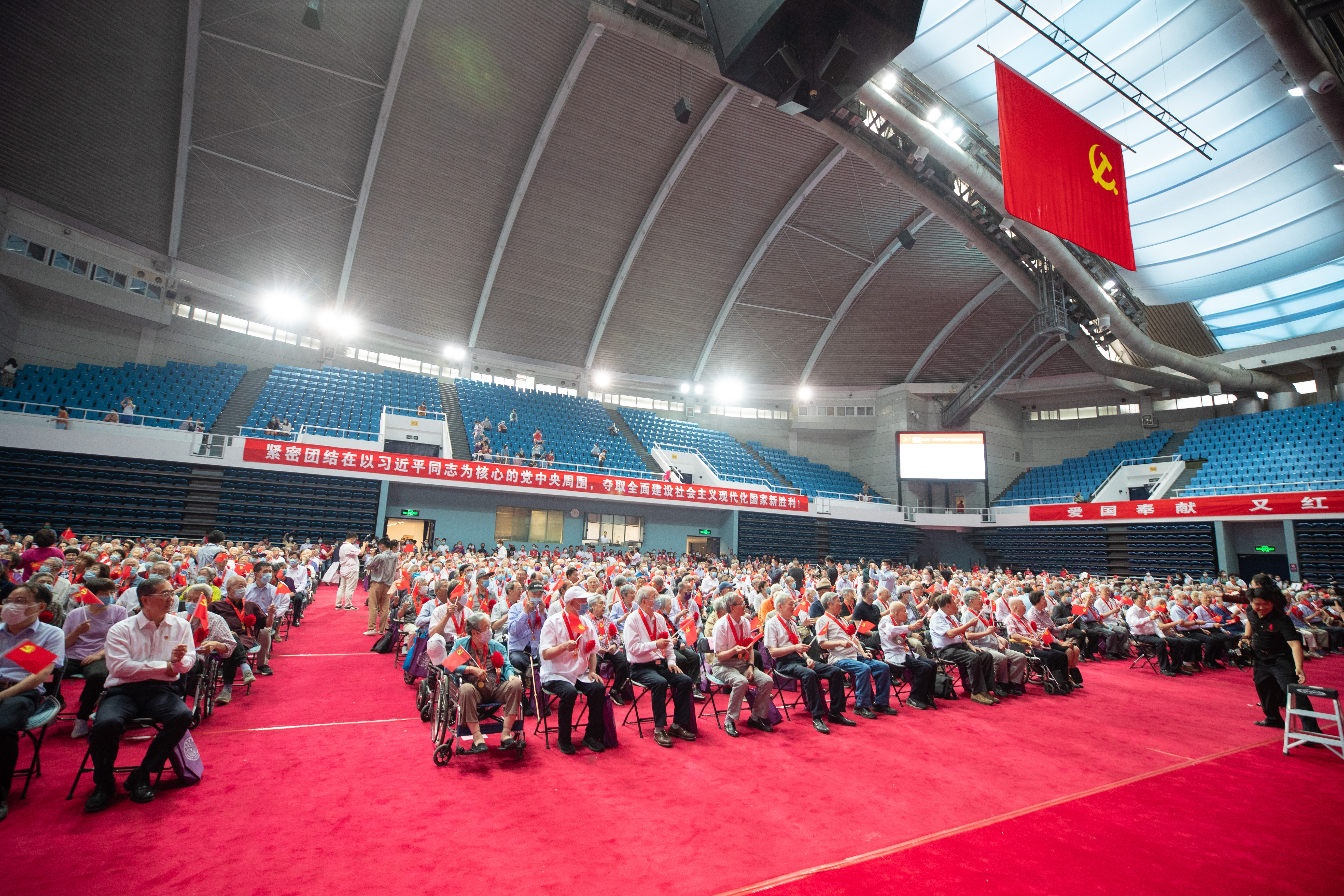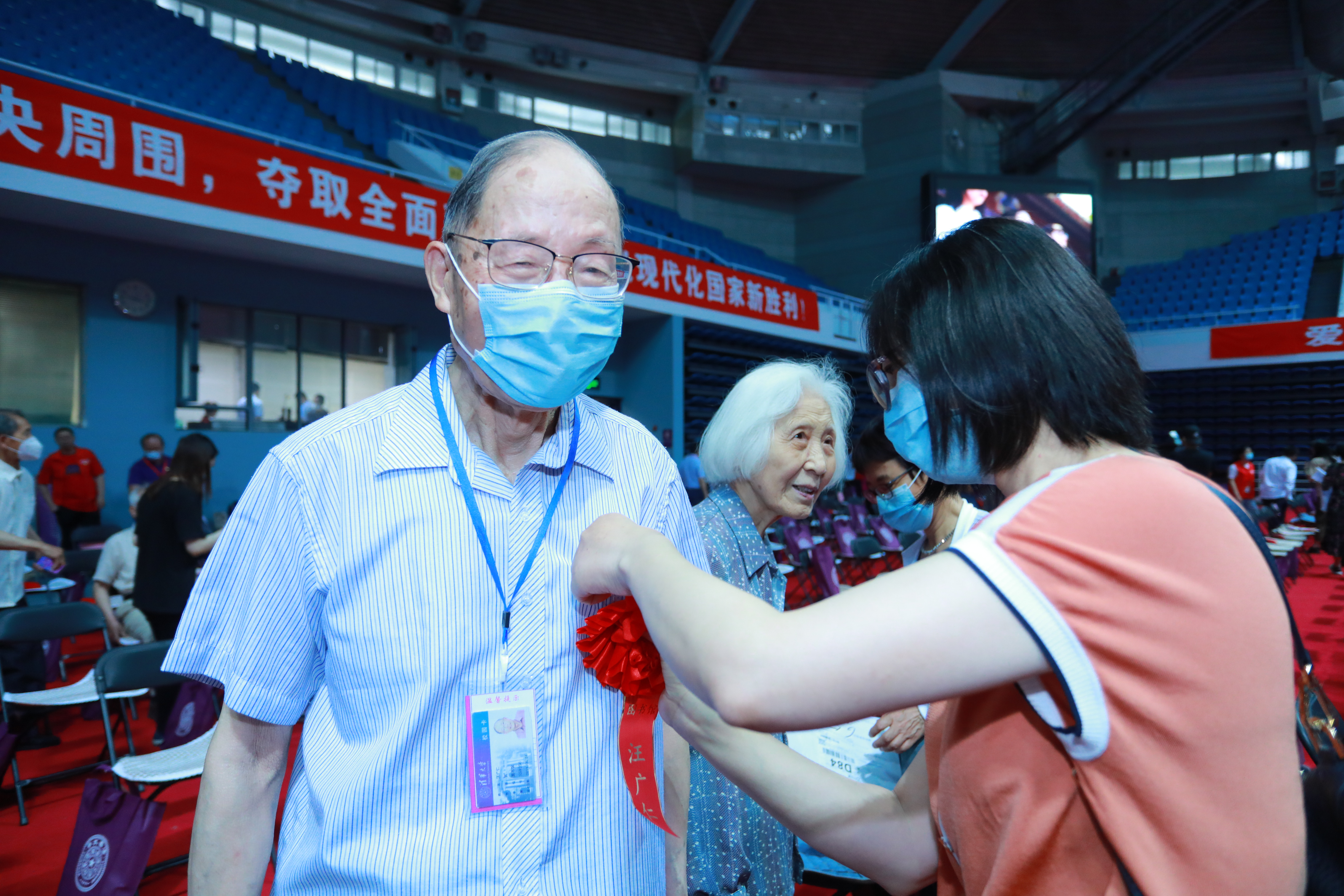 6月16日上午,乐鱼在线平台“光荣在党50年”纪念章集中颁发仪式在综合体育馆举行。光荣授章、重温入党誓词、齐声高唱《没有共产党就没有新中国》……纪念章颁发仪式庄重而简朴。光辉的纪念章代表着以习近平同志为核心的党中央的关怀和温暖,映照着老党员为共产主义事业奋斗终身的庄严承诺。