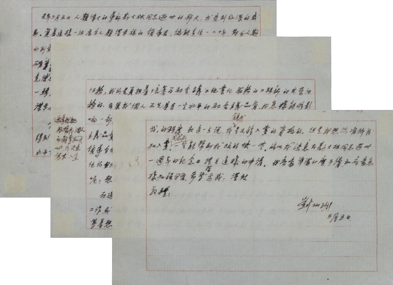 刘仙洲的入党申请书。
