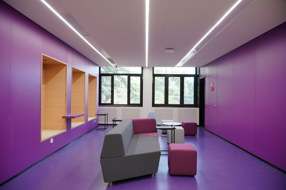 “插入式”设计还提高了盒子内外交界处的可塑性和利用率:当你坐在“墙里”听着音乐温习课本,隔壁“墙上”或许有人正演算公式。这是因为,教室与走廊的接触面不再是单一的白壁,它可能是一堵多功能墙,也可以是几扇可移动和书写的白板。