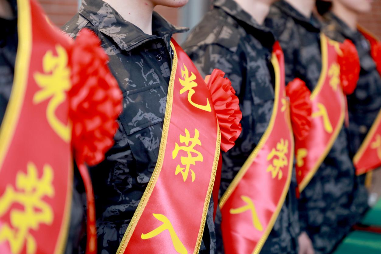 入伍新兵佩戴红花绶带