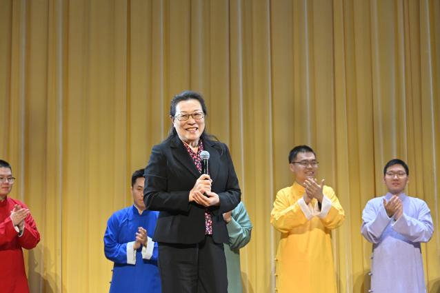 赵洪代表艺术教育中心祝贺曲艺队复建20周年队庆活动取得圆满成功,希望同学们不断精进业务、提升能力,进一步发扬“文艺轻骑兵”传统,推出更多群众喜闻乐见的优秀作品。学生艺术团1997级团员、曲艺特长生、曲艺队复建后首任队长胡鑫喆与大家分享了曲艺队复建前后的艰辛,希望曲艺队能够在老师们的关怀指导下,在队员们的不懈努力下,在观众朋友们的鼓励支持下,在清华的艺术沃土上,走过更多的二十年。