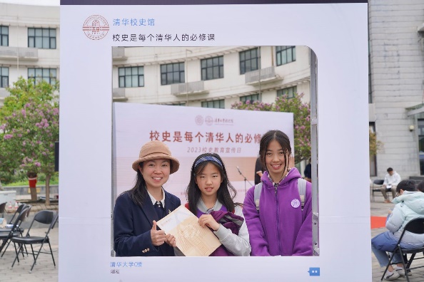 在南北两侧设置的合影集赞区,师生们在此热情打卡。将打卡照片配文“校史是每个清华人的必修课”转发朋友圈,集赞20个即可现场兑换一份校史馆的文创产品。相机“咔嚓”一声,定格下每一个人笑意盈盈的面庞,现场充满了欢快的气氛。