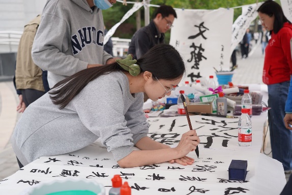 学生们现场书写校史经典