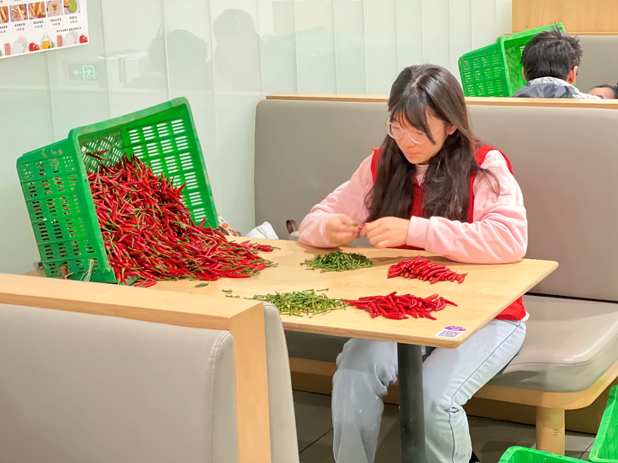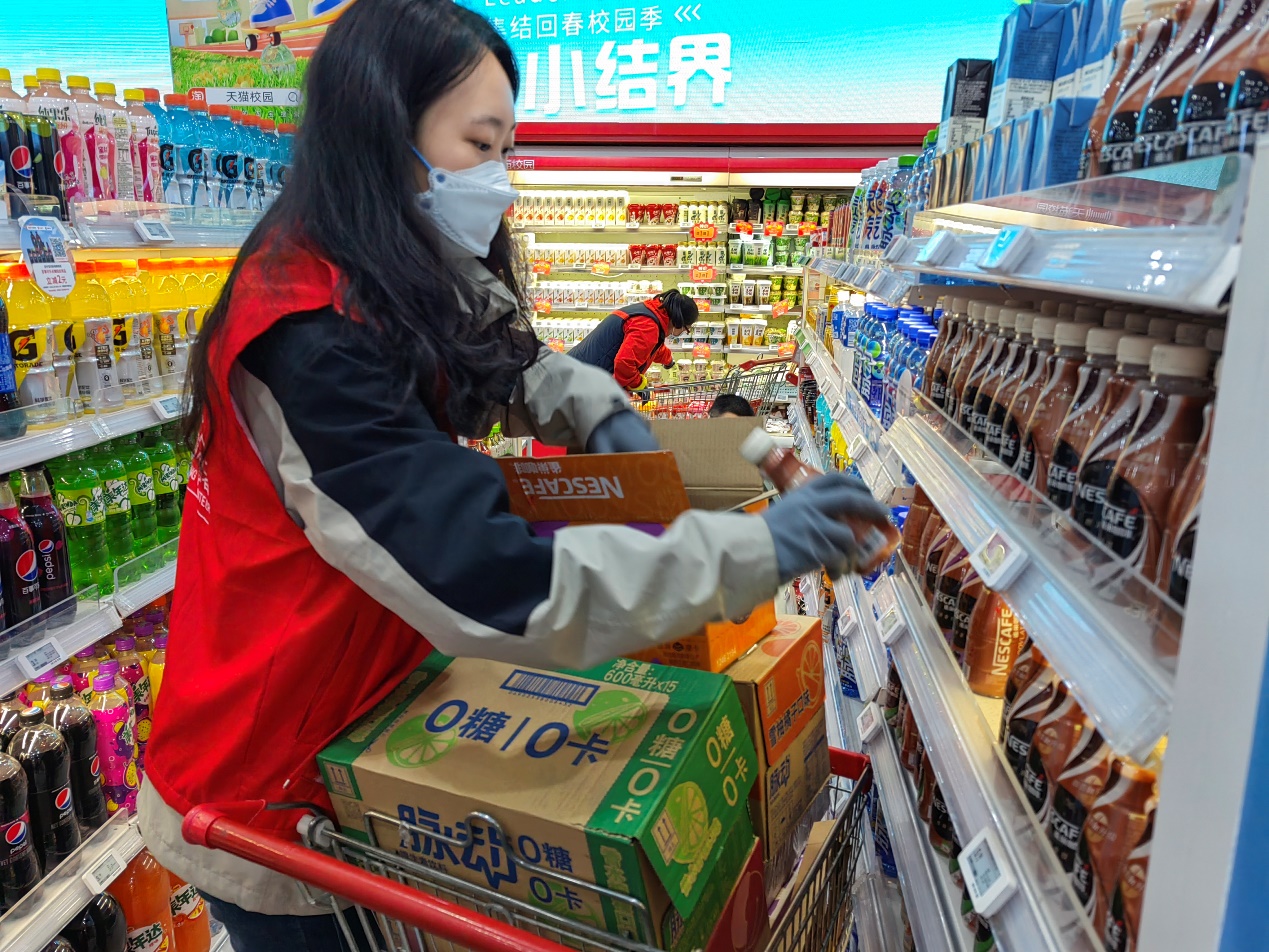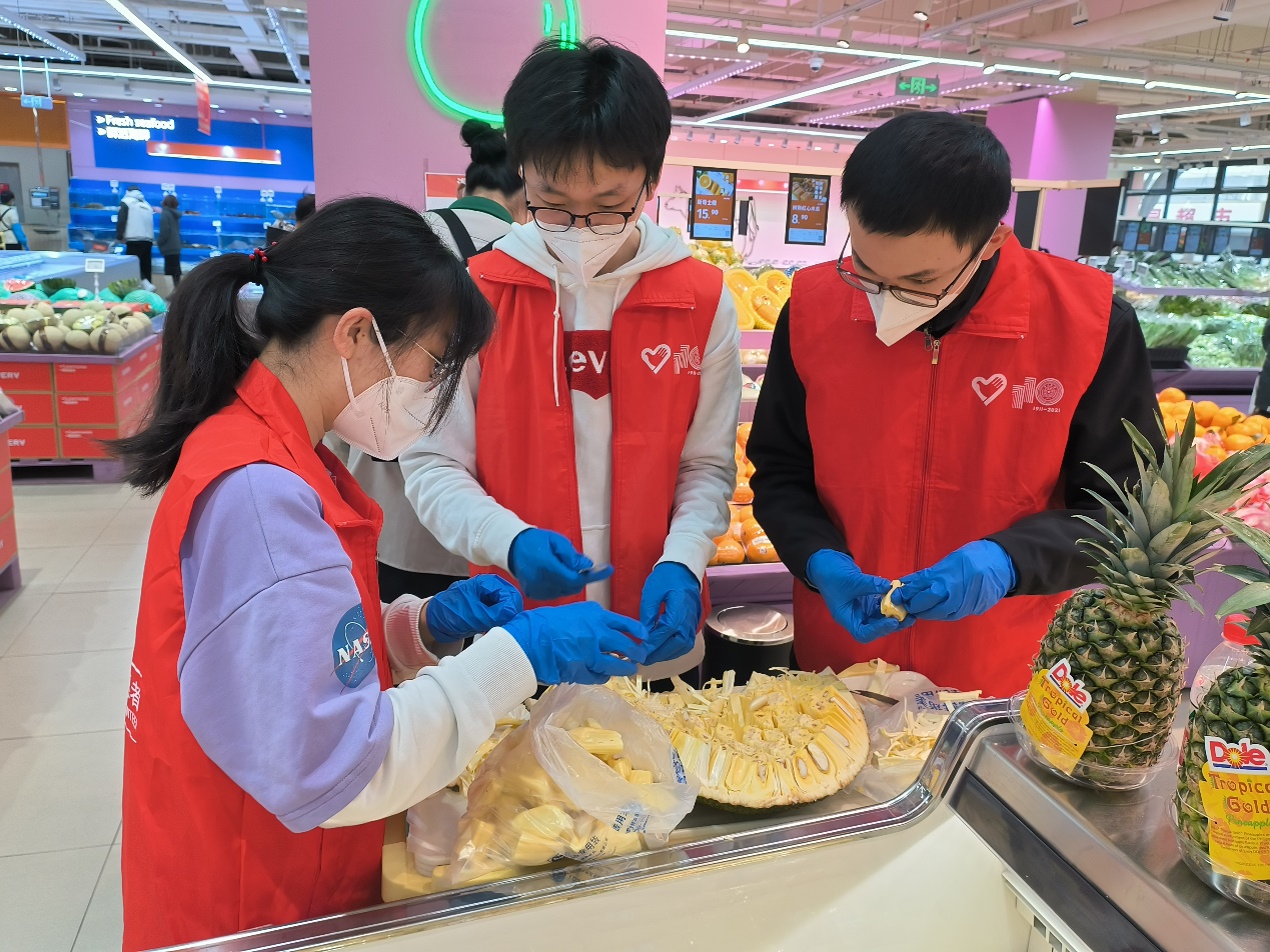 商贸中心新开张的照澜院“菜鲜果美”超市也为同学们提供了劳动岗位,同学们协助超市工作人员完成摆货补货、筛选处理分装水果、环境保洁、超市导购等任务,为超市的日常运行提供有力支持。