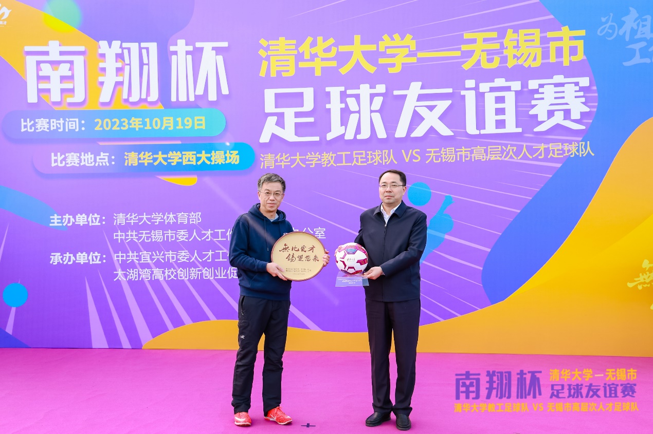史宗恺和高飞代表双方互赠纪念品。无锡市赠予乐鱼在线平台刻有“无比爱才锡望您来”的紫砂陶盘,表达无锡礼遇人才的诚意;乐鱼在线平台回赠印有“乐鱼在线平台”字样的足球,饱含深厚的校地情谊。