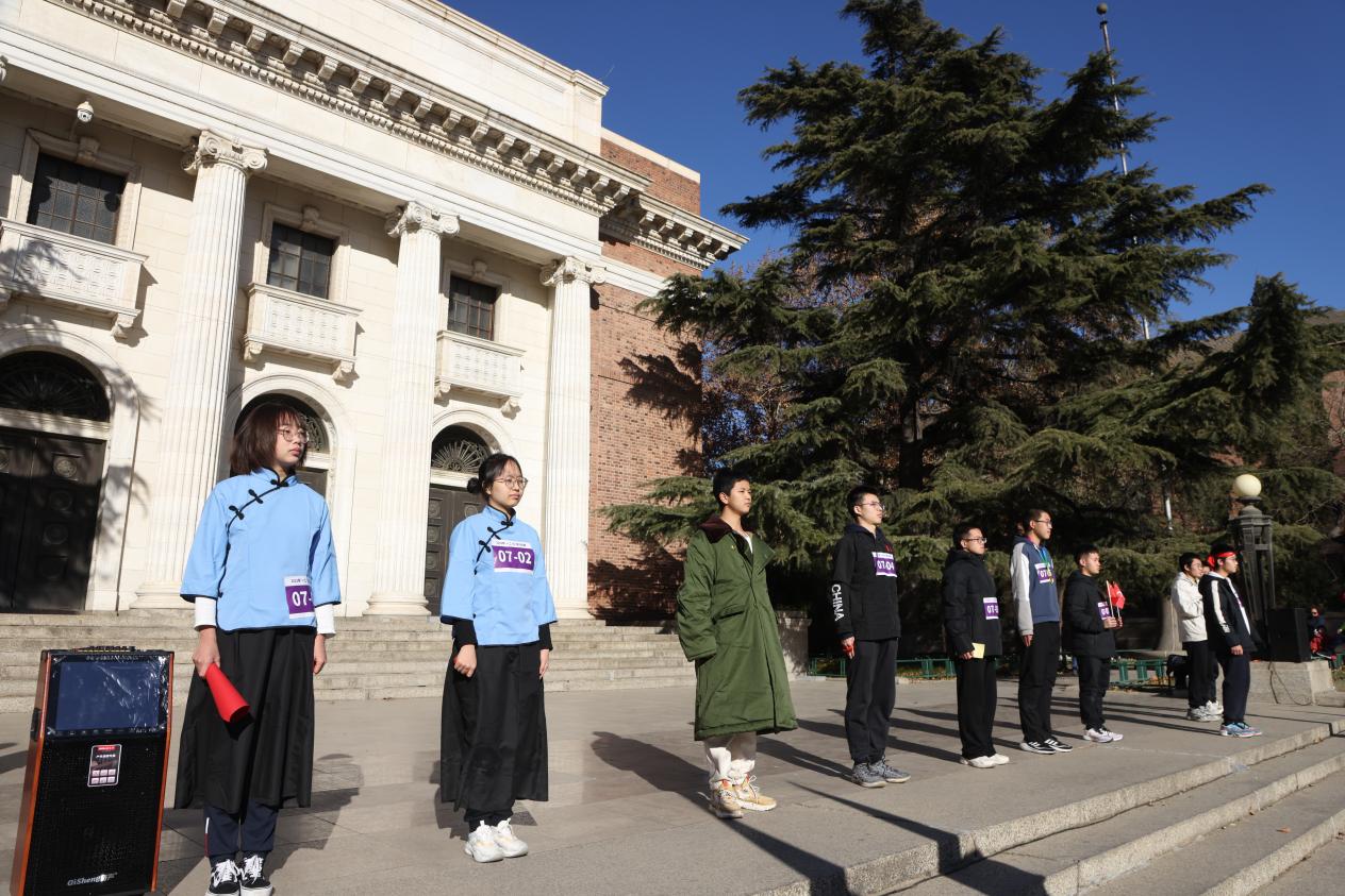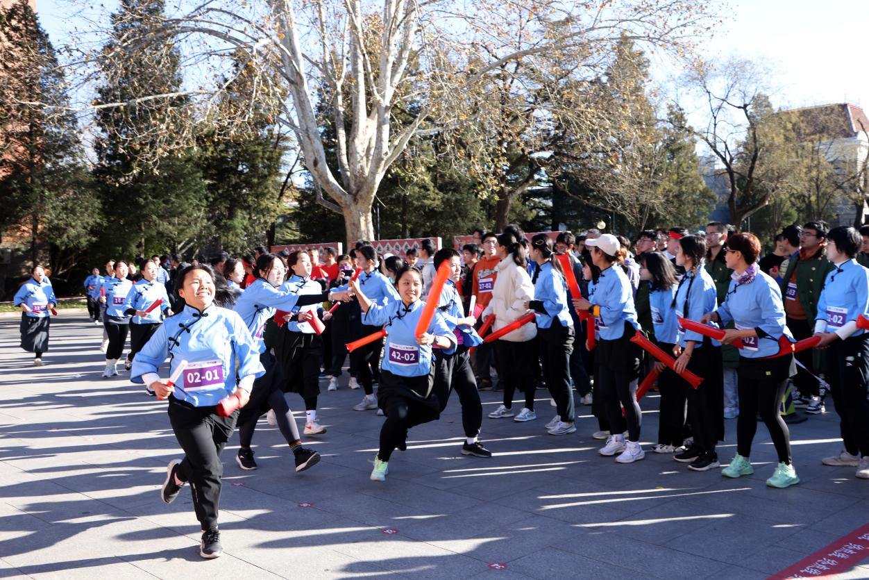 为让同学们更深刻地感悟历史及时代变迁,此次活动对赛道和棒次进行了精心设计。活动以“一二·九”运动中重要事件的发生地点如西直门、西四、新华门、天桥等地命名路线各节点,参照各地大致空间分布设立相应展区。同时,前五棒还原了“一二·九”运动中的特定历史场景,后五棒融入改革开放45周年、抗美援朝战争胜利70周年、共建“一带一路”重大倡议提出10周年、杭州第19届亚运会等元素,为长跑活动赋予了更深刻的历史内涵和时代意义。