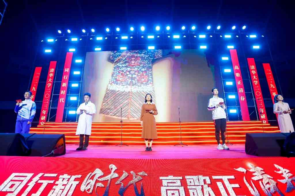 合唱快闪《我和我的祖国》引起来现场观众的阵阵掌声,学生代表为观众带来朗诵节目《多彩清春,时代有我》,展现当代清华人的风采。各联队指挥共同合唱《领航》,将晚会气氛推向高潮。
