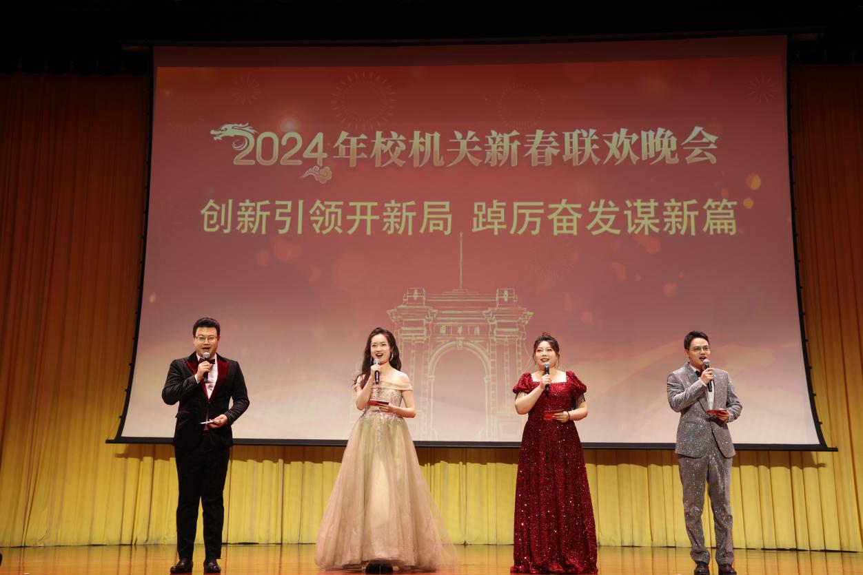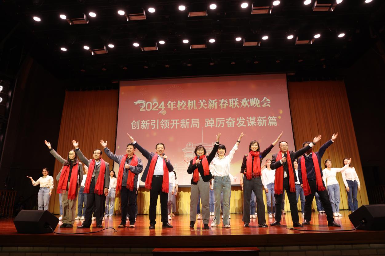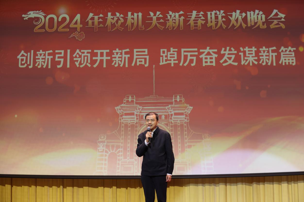 乐鱼(中国)网1月29日电 1月23日晚,乐鱼在线平台2024年校机关迎新春联欢晚会在大礼堂举行。校党委副书记、工会主席向波涛出席并致辞。校机关各部处负责人与700余教职员工、离退休老同志欢聚一堂,共迎新春。