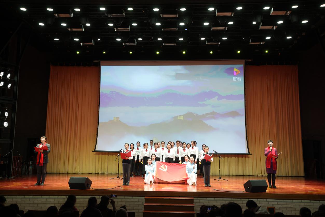 第三篇章,保卫部诗朗诵《新中国教育界一面高扬的旗帜——致敬老校长蒋南翔》,用真情向伟大的教育家致敬。离退休处、档案馆、校史馆的原创表演唱《百年清华永向前》,诉说了机关人在新的百年征程上推动学校各项事业高质量发展的信心。实验室处、法务办的《华业战线联盟》,活泼动感的旋律带动了舞台氛围。资产处的《明天会更好》将歌唱和表演融合,表达了战胜困难的信心和温暖人心的力量。