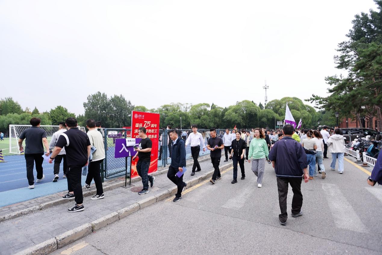 各单位教职工分批从东大操场出发,沿着设定路线依次经过综合体育馆、人文楼、马约翰纪念雕像,最终到达西大操场,全程约两公里。健步走途中设有多个打卡点,并设置了专题展板和宣传橱窗,教职工在每一个打卡点扫码签到的同时,纷纷驻足观看专题展览。
