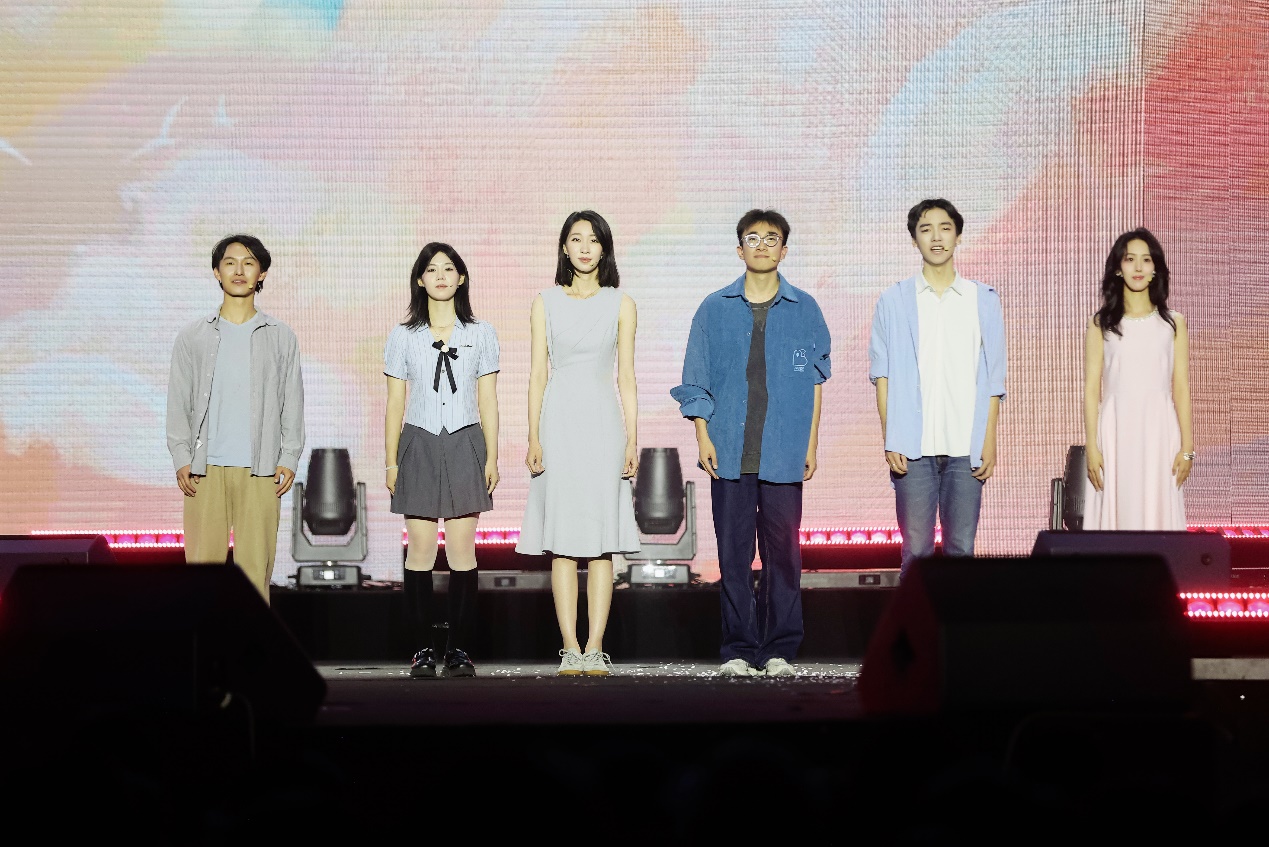 “心心相印”篇章以校友嘉宾水木年华乐团的《启程》《就算没有很伟大的梦想》《一生有你》三首曲目开场,道尽前行的坚定、平凡的温暖与同窗情谊的珍贵。临别之际,教师代表向毕业生们道出最后一声嘱咐与叮咛,并与学生艺术团合唱队共同唱响《明天会更好》。合唱《心光·时光》以纯净的声线和表演,将青春时光与心中光芒交织。全体师生起立齐唱校歌,熟悉的旋律再次响彻综合体育馆,每一个音符都饱含着对母校的深情。