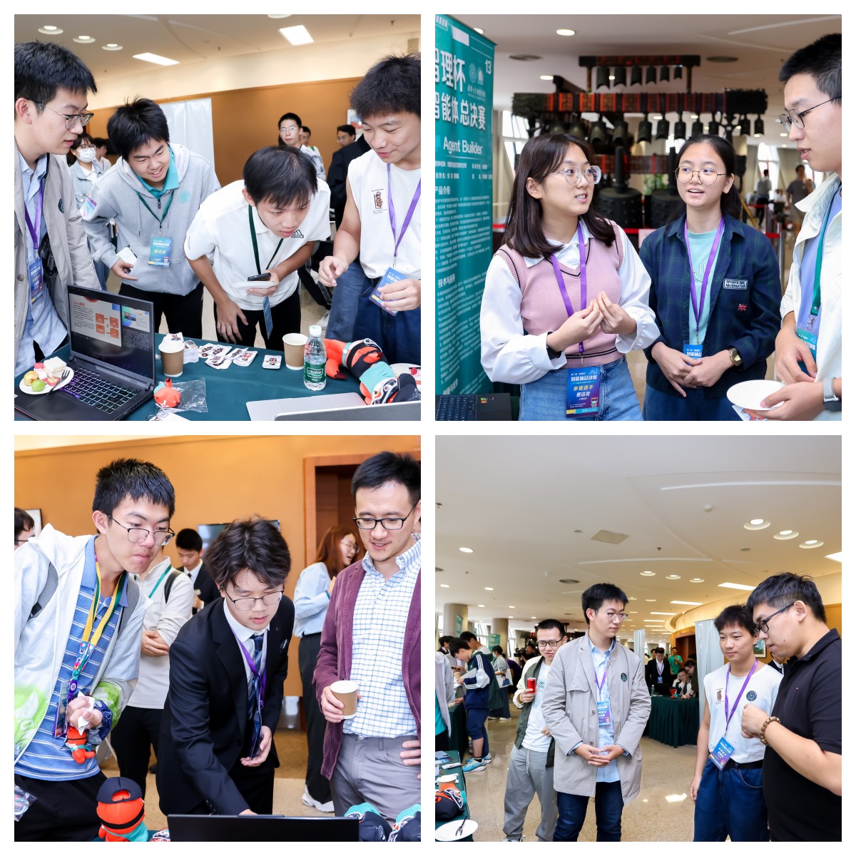 汇报展示环节,Vibe Coding赛道的汪钰涵、朱毅梵、张岳、杨政昊等团队,Agent Builder赛道的龚涤非、何冠辉、宋奕霏、姚舜韬、邱璟祎、张珏萌、赵英骅、胡欣玗、何冠辉、罗钦仁、金泓廷、潘洪浩、邹迦音等团队进行了展示交流。现场展示体验环节,各参赛团队与嘉宾和师生进行了面对面更加深入的交流。现场评委经过打分与评定评出本届比赛的一、二、三等奖以及智理之星、卓越技术突破奖、最佳社会价值奖、最佳用户体验奖、现场最佳人气奖。