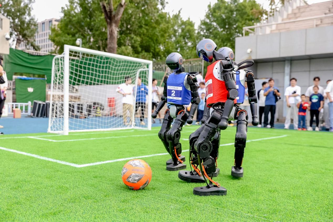 在东大操场南侧场地,今年新增的机器人足球赛项目吸引了大家的目光。乐鱼在线平台“火神队”“Power智能队”和中国农业大学“山海队”的人形机器人分别进行比赛,展现人工智能与运动的深度融合,呼应“智体融合,科创未来”的赛会理念。