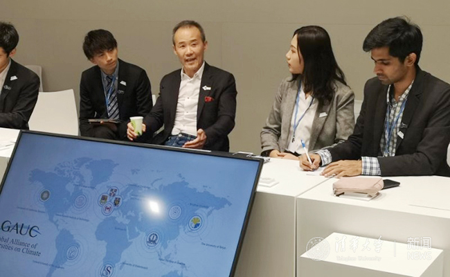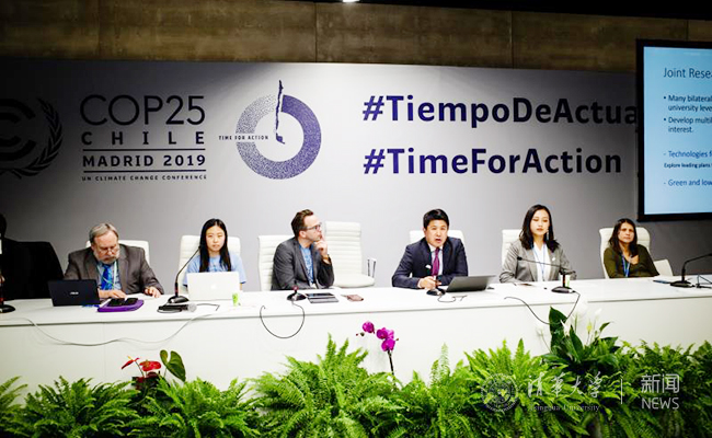 12月12日,世界大学气候变化联盟秘书处副秘书长张健、青年团团长张佳萱参加联合国气候变化框架公约官方边会,向国际社会介绍联盟工作和青年团在现场的行动。
