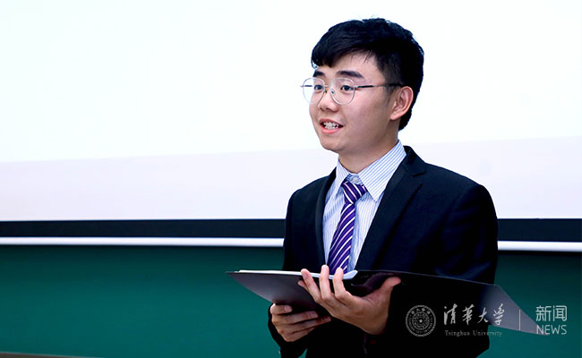 能动系毕业生杜秉霖作为本科生校友年级理事代表发言。他表示,清华校友2019届全体理事将不辱使命,不辜负老师同学们的信任,甘为纽带,联系同学,共享美好明天,共创美好未来。