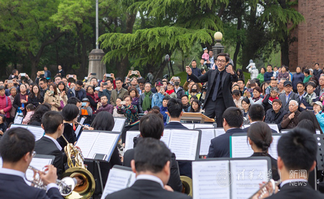 “自信的清华更开放”,在校庆期间,学生艺术团用精彩纷呈的艺术活动为自信、开放的清华作了最好的注脚。从工字厅前奏响的第一声民乐合奏,到新清华学堂的余音绕梁,学生艺术团好戏连台,轮番上演。28日早晨,校庆游园活动如约而至。军乐队从艺术博物馆出发,沿途经过主楼、新清华学堂、二校门等地,整齐划一的队伍和多种风格的曲目成为校庆日当天的亮点。在历年活动的基础上,今年的校庆游园活动共有超过170位同学参加,涵盖管乐、国标舞、合唱、手风琴、啦啦操等多种表现形式,同学们训练有素而不失活泼的表演展现了清华学子的自信与朝气,传递了清华园的活力与开放。