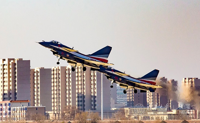 清华师生观看八一飞行表演大队歼十战机飞行表演