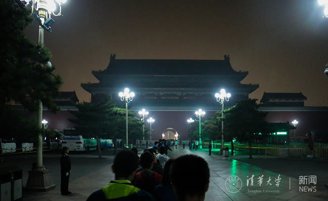 1日凌晨3时许,参与活动的近160名学生便从乐鱼在线平台东北门乘坐校车出发,到达天安门广场东观礼台。秋天凌晨的寒冷并没有降低同学们的热情,在观礼台等候片刻后,国旗仪仗队整齐的脚步声扣响大地,共和国生日当天的升旗仪式开始了。