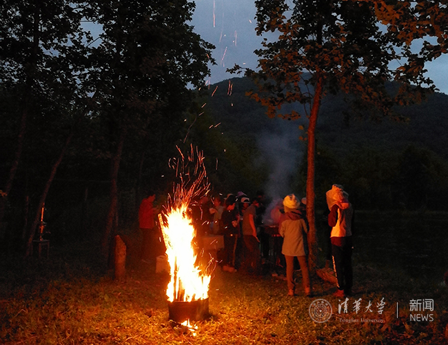 勘察加野外围着篝火上课。