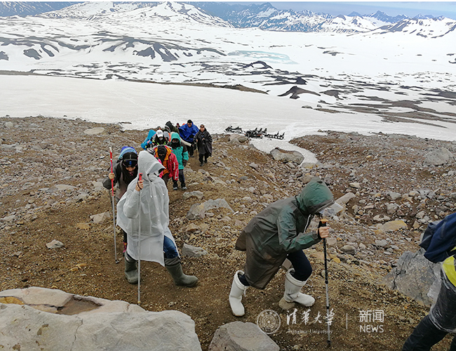 在勘察加雪地考察。