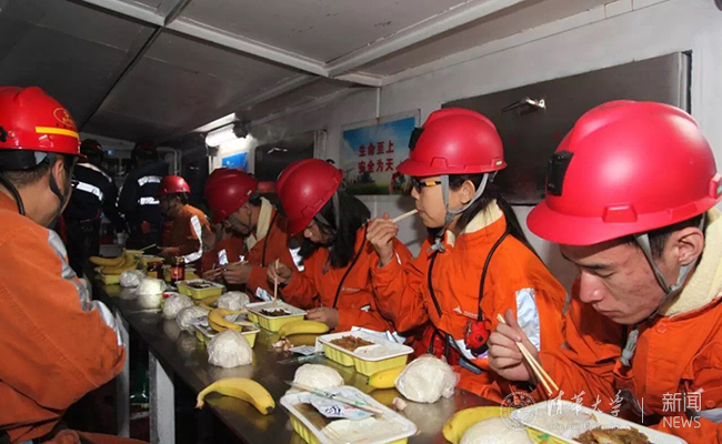 与煤矿工人共进午餐。张楚 摄
