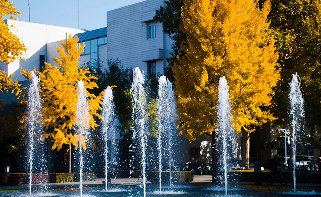 从11月7日开始,主楼喷泉将正式运行。配置的九个喷头计划每天分三个时段(8点-9点,12点-13点,16点-17点)喷水。其余时间为镜面水池景观。