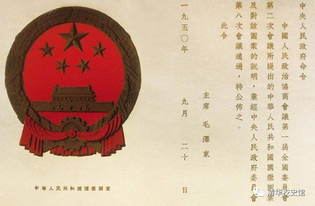 国名、国徽、国旗、国歌,分别是一个主权国家的象征和标志,它们体现了一个民族的风格,代表了一个国家的灵魂。开国之初,在国名的产生、国徽的设计、国旗的讨论和国歌的选定过程中,清华人奉献了自己的智慧,倾注了心血。在新中国成立70周年之际,我们根据校史馆、档案馆等所存的有关资料,编选整理如下文章,让后来者了解这段令全体清华人引以为自豪和骄傲的历史。