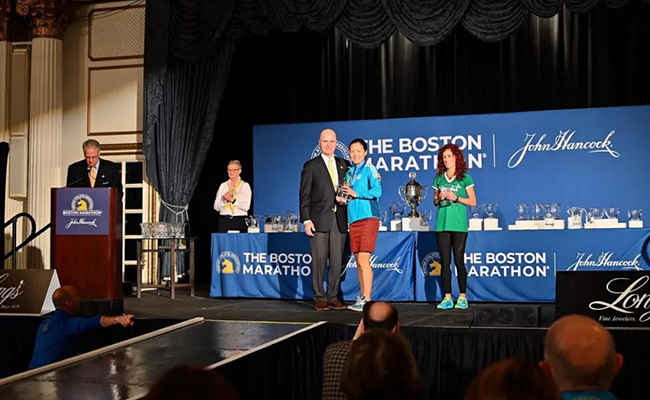 刘春华:我觉得挺感动的。颁奖的时候,其中有一个是颁给一位特别有名的女跑者,叫Joan Benoit Samuelson,美国人特别崇拜她。她是奥林匹克马拉松冠军,两届波马冠军,一届纽约马拉松冠军,很多她这个年代的美国人受她影响非常大。她是61岁,这次跑了3小时4分,拿到了她那个年龄组60—64岁的冠军。当她进场的时候,全体站起来对她表示敬意。我当时挺感动的,我觉得我也许可以和她一样,跑到61岁的时候,我还可以跑3小时4分。当然这只是一个很崇高、很仰望的目标。