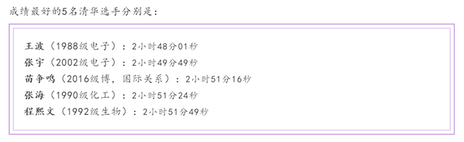 在这40名清华校友中,有高达25人再次获得波士顿马拉松资格(BQ),更有王波、张宇、苗争鸣、张海、程熙文、徐勇、周爱兵、易小兵等8人突破三小时。“神仙”于军虽以7秒之差憾别破三目标,但为自己下个波马留下进步空间。