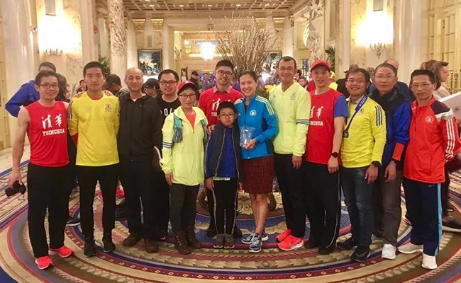 今年共有40名来自全球各地的清华校友跑步爱好者聚首波城,其中男子28人、女子12人。他们中有1977级的学长,也有年轻的2016级博士生,年级跨度长达39年。40名清华健儿全部顺利完成比赛,男子平均3小时22分25秒,女子平均3小时42分43秒,总平均3小时28分30秒,向世界展现了清华学子们“无体育,不清华”的英姿与风采。