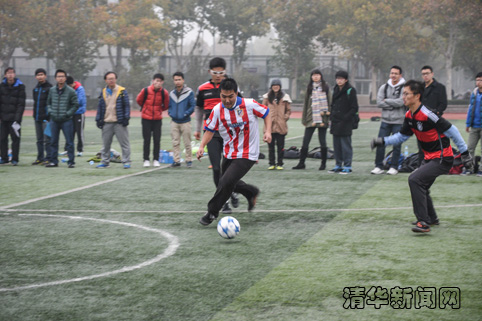 在总决赛比赛前,现场进行了首届足球全明星对抗赛,由清华2015级足球队队员挑战其他年级校足球队队员,受到在场师生的全情关注,最终两队战成1:1握手言和。