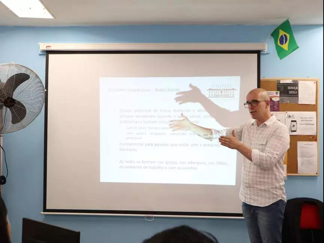 在圣保罗还有一些像ADUS一样旨在促进难民融合的组织,但是与那些NGO组织不同的是,ADUS是一种介于政府部门和NGO性质之间的公民社会组织,除了组织内专职的行政和运营主管之外,其他所有工作人员全部无偿工作,而作为创始人的Marcelo、Victor则兼职其他工作。毕业于圣保罗大学的Marcelo在工作中同时也在进行关于难民社会再融合的学术研究。在中国进行商品贸易生意的Victor在湖北大学学习汉语时还起了一个中文名字——马捷。