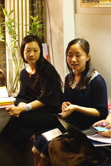 吴一荻(右一)与同学们分享实践经历。