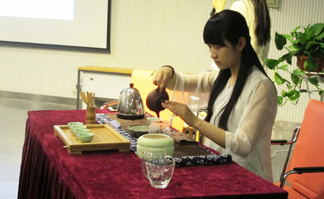 学生茶协会同学在文图学术漫谈现场茶艺展示。贾虓涧 摄