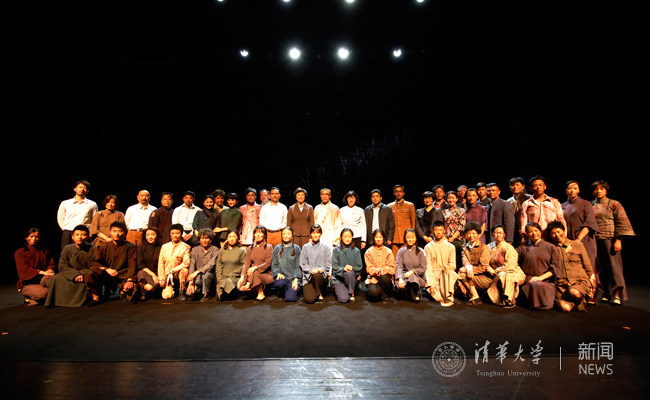 13日晚,陈旭、张雪、张文斌、徐宁等与全体演员合影。学生记者 庞正源 摄