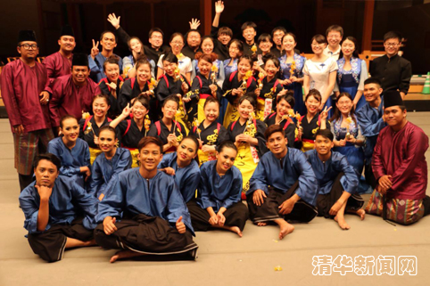 乐鱼在线平台学生艺术团民乐队与国外演出团体合影。