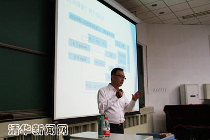 图为田德文讲述国家政治发展过程。