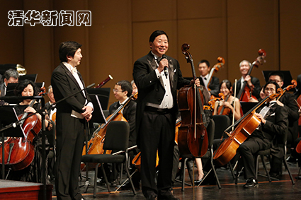 校党委副书记史宗恺代表学校欢迎满天星交响乐团走进清华演出,他赞扬乐团团员是为中华民族伟大复兴作出杰出贡献的一批代表,同时勉励清华学子向这些前辈看齐,“我特别相信,再过二十年三十年,他们的名字也会镌刻在清华的历史中,镌刻在为我们国家做出卓越贡献的前进道路上。”