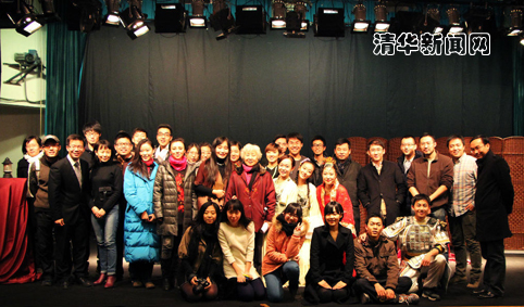 图为话剧队队员们在《过河》后与郑小芸老师合影。孔祥正 摄