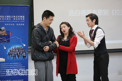 为了让学生能与歌剧有更加“亲密接触”,李晶晶还现场邀请同学扮演歌剧中的角色,并演唱了普契尼歌剧《贾尼斯基基》中最著名的女高音咏叹调《我亲爱的爸爸》,以及歌剧《艺术家生涯》中的《漫步街上》等片段,纯净饱满的音色和透亮高亢的歌喉,让现场掌声雷动。同时,上台参与互动的同学们那略带羞涩的“客串”表演也将大家逗得捧腹大笑。