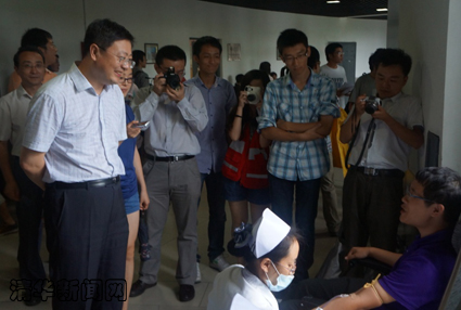 下午1点,陈吉宁、史宗恺等先后来到献血现场,慰问献血同学。陈吉宁跟同学们分享了自己学生时代献血的趣事,强调无偿献血的重要性,并对参与献血的学生给予高度赞扬。他谈到,无偿献血已成为清华的一项优良传统,是一代代清华人的共同记忆。很多同学在学期间都不止一次的参加献血,要鼓励更多清华人加入到献血队伍中来,把这种精神和传统传承下去。他还对清华无偿献血的组织工作及未来发展提出了建议。史宗恺强调,无偿献血是一项非常光荣的事业,是大学文化建设不可或缺的要素,培养了同学们的公益意识。