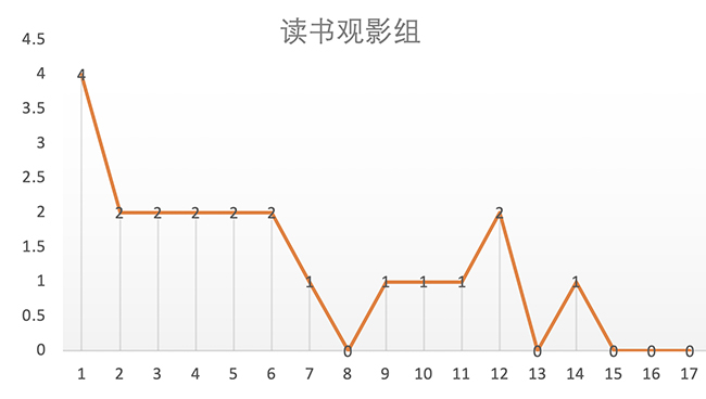 “读书观影组”规定每日读书或看电影后撰写感想不少于100字为有效打卡。在开组时就迎来了班级的读书高潮,同学们交换了心得、交流了思想。