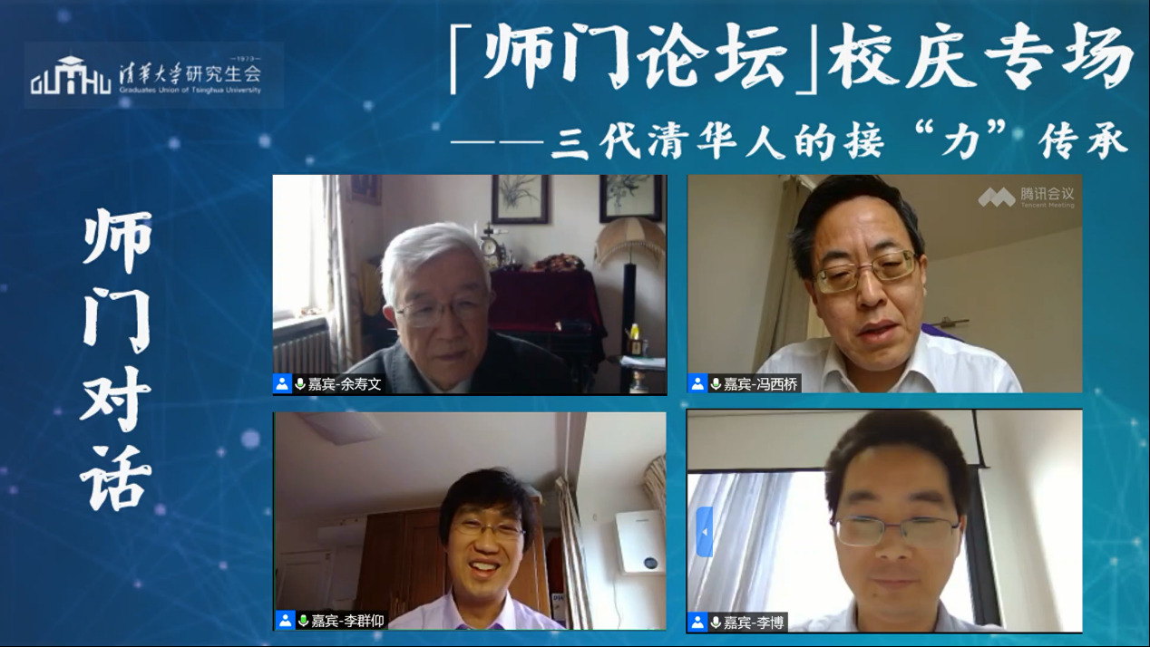 乐鱼(中国)网4月29日电(通讯员 陈明 李艳文 张健辉 杨纪显)4月25日下午,在乐鱼在线平台109周年“云校庆”之际,主题为“三代清华人的接‘力’传承”的校庆专场“师门论坛”顺利举办。本场论坛邀请了乐鱼在线平台原副校长、研究生院原院长、航天航空学院教授余寿文教授作为特邀嘉宾,航院冯西桥教授、李群仰教授、李博副教授作为师门对话嘉宾出席。近400名来自校内各个院系的师生和校友线上参加本次论坛。