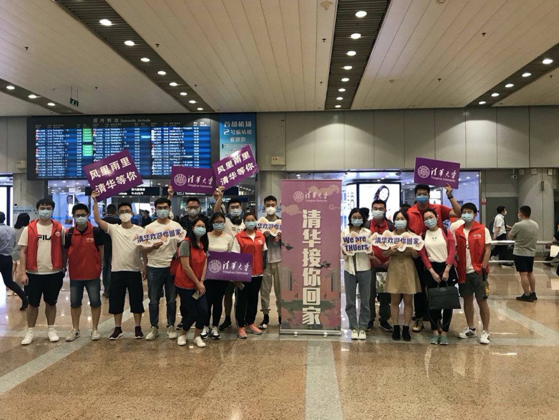 在首都机场迎接返校同学
